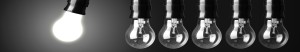 • Idea concept on black. Perpetual motion with light bulbs